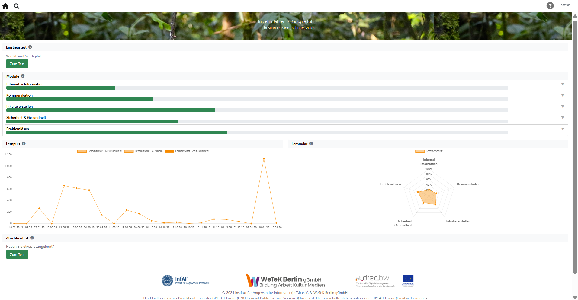 ComDigis* LXP fördert selbstgesteuertes Lernen und ermöglicht flexibles Lehren zur Entwicklung digitaler Schlüsselkompetenzen. Diese umfassen Wissen, Fähigkeiten und Haltungen, um digitale Technologien kritisch, kreativ und sicher zu nutzen – von Datenrecherche bis zur Kommunikation in virtuellen Räumen. Lernende werden befähigt, akademische Herausforderungen zu meistern, berufliche Perspektiven zu erweitern und den digitalen Wandel aktiv mitzugestalten.